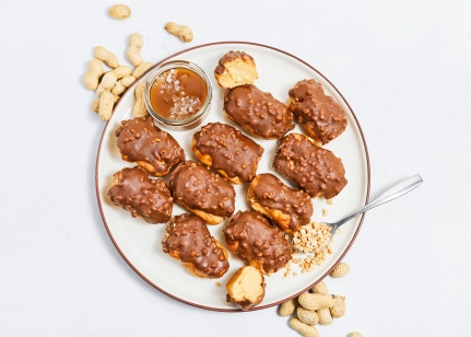 Pildījums ar sāļo karameli (45%)(sāļās karameles pildījums (33%)(glikozes sīrups, cukurs, iebiezināts piens, augu tauki, augu eļļa, sāls, aromatizētājs, emulgators saulespuķu lecitīns, maltodekstrīns, dabīgs aromatizētājs (satur pienu), krāsviela annatto, kurkumas ekstrakts), piens, sviests, krēma maisījums (cukurs, pārveidota ciete, sūkalu pulveris, palmu tauki, glikozes sīrups, piena tauki, emulgators E472b, vājpiena pulveris, piena olbaltumvielas, biezinātājs E407, stabilizētājs E450, burkānu ekstrakts, safloras koncentrāts), iebiezinātais piens, saldais krējums), plaucētā mīkla (olu masa, kviešu milti, margarīns (augu eļļas (rapšu, palmu), emulgatori rapšu lecitīns, E471, skābuma regulētājs citronskābe, dabīgs aromatizētājs, krāsviela beta karotīns), sāls), karameļu glazūra (augu tauki (palmu, palmu kodolu), saulespuķu eļļa, karameļu pulveris (sūkalas, sviests, vājpiena pulveris, dabīgs aromatizētājs), piena pulveris, kakao pulveris, emulgatori E492, sojas lecitīns, aromatizētājs, krāsviela E160c), zemesrieksti (4%)