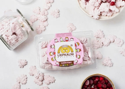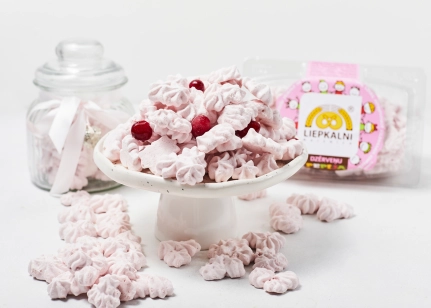 Gaisīgi maigi olbaltuma cepumi puķītes formā ar dzērveņu klātbūtni, kā maigi rozā mākonīši ļauj raudzīties debesīs un sapņot! Mazās skābenās dzērveņu puķītes aicina rotāties. Pepija māk piešķirt katrai lietai vieglumu, papildināt un paspilgtināt ikdienišķo.