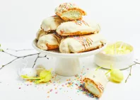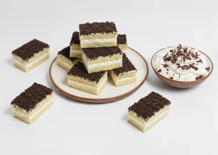 Olas, biezpiens, cukurs, putukrējums (paniņas, augu eļļa (palmu), saldais krējums, paniņu pulveris, emulgatori E472b, E475, E435, E471, E433, stabilizētāji E410, E407, sāls, dabīgs piena aromatizētājs, krāsviela beta karotīns), kviešu milti, apelsīnu sula, kakao pulveris, kartupeļu ciete