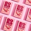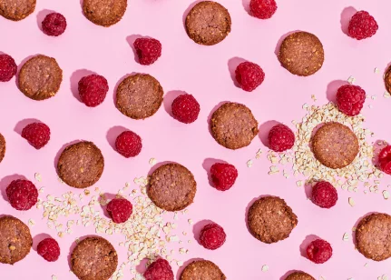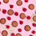 Bezglutēna auzu pārslas (28%), augu eļļas (kokosriekstu, rapšu), rīsu milti, olas, cukurniedru cukurs, aveņu deserta pasta (5%)(cukurs, aveņu mīkstums bez sēklām (40%), plūškoka koncentrāts, dabīgs aromatizētājs), bezglutēna auzu milti (3%), mandeļu milti, kaltēti aveņu gabaliņi (2.5%), tapiokas ciete, ceļteku sēklu sēnalu pulveris, inulīns, rozmarīna ekstrakts, irdinātājs cepamā soda,  sāls