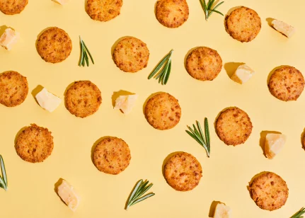 Miltu maisījums (bez lipekļa)(kukurūzas ciete, rīsu milti, augu šķiedras (ceļtekas, bambuss), pilngraudu rīsu milti, lēcu milti, dekstroze, biezinātājs hidroksipropilmetilceluloze, sāls), siers (24%)(piens, ieraugs, cietinātājs kalcija hlorīds), augu eļļas (kokosriekstu, rapšu), olas, zirņu olbaltumvielas, tapiokas ciete, rozmarīna ekstrakts, ceļteku sēklu sēnalu pulveris, dabīgs siera aromatizētājs (0.6%), rozmarīns (0.4%), asās paprikas pulveris, sāls