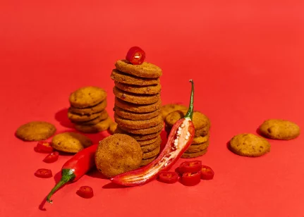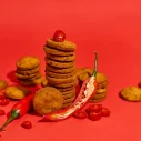 Miltu maisījums (bez lipekļa)(kukurūzas ciete, rīsu milti, augu šķiedras (ceļtekas, bambuss), pilngraudu rīsu milti, lēcu milti, dekstroze, biezinātājs E464, sāls), siers (23%)(piens, ieraugs, cietinātājs kalcija hlorīds), augu eļļas (kokosriekstu, rapšu), olas, zirņu olbaltumvielas, tapiokas ciete, garšvielu maisījums ar saldo čilli (2%)(garšvielas, dekstroze, čilli (4.5%), skābe citronskābe, kūpināta paprika, antioksidants askorbīnskābe), ceļteku sēklu sēnalu pulveris, antioksidants rozmarīna ekstrakts, dabīgs siera aromatizētājs, čilli pipari (0.25%), asās paprikas pulveris (0.2%)