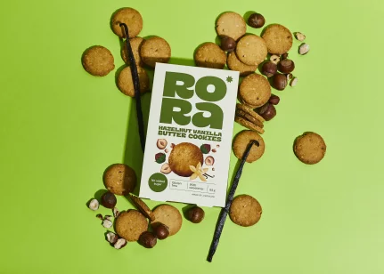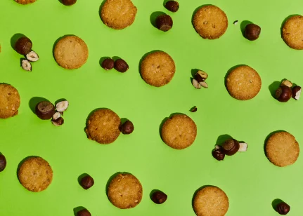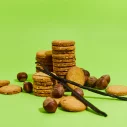 Tapiokas ciete, bezlaktozes sviests (20 %), olas, lazdu riekstu gabaliņi (10%), rīsu milti, saldinātājs maltīts (7%), kukurūzas milti, mandeļu milti, turku zirņu milti, ceļteku sēklu sēnalu pulveris, dabīgs vaniļas aromatizētājs, irdinātājs cepamā soda, antioksidants rozmarīna ekstrakts