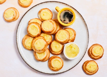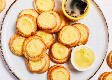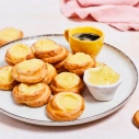 Kviešu milti, vaniļas krēms (pārveidota ciete, sūkalu pulveris, kokosriekstu eļļa, stabilizētāji E450 (ii), E339, E516, biezinātājs E401, krāsviela beta karotīns, aromatizētājs), margarīns (augu tauki (palmu eļļa), augu eļļa (rapšu eļļa), emulgatori E471, saulespuķu lecitīns, skābuma regulētājs citronskābe, krāsviela beta karotīns), cukurs, rapšu eļļa, olu masa, ķirbju biezenis, raugs, sūkalu pulveris, sāls